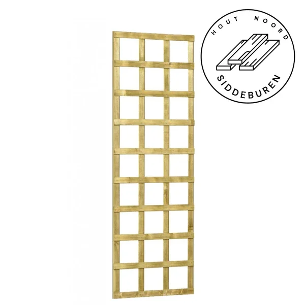 Grenen trellis met geschaafde latten van 1,2 x 4,2 cm. Groen geïmpregneerd.