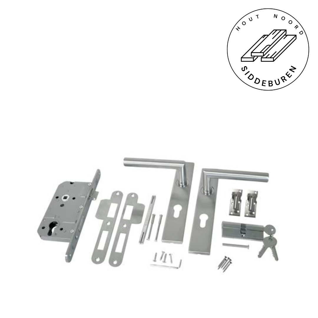 RVS luxe deurbeslagset. SKG keurmerk met slotkast, cilinder, slot en duimen